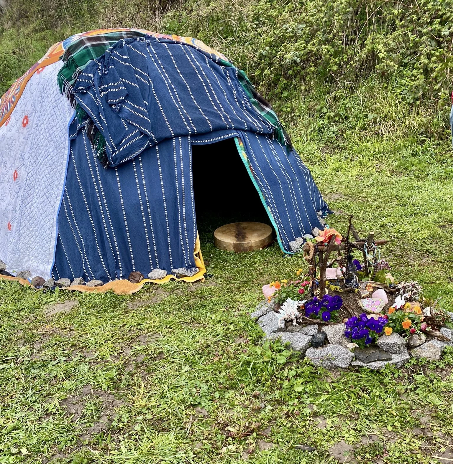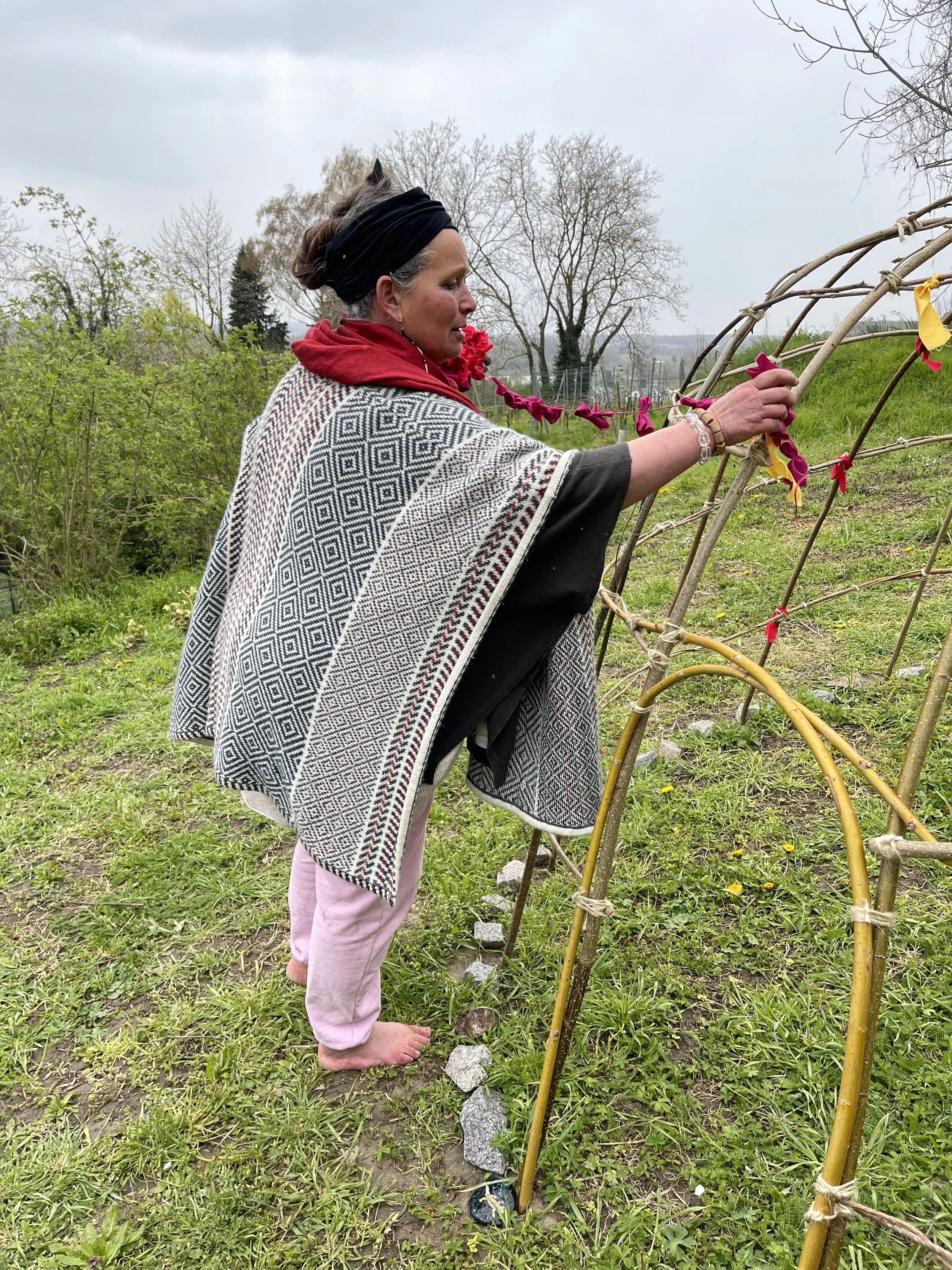 Naomi Pamuya, Schamanin am Kaiserstuhl, beim Einweihen ihrer eigenen schamanischen Schwitzhütte